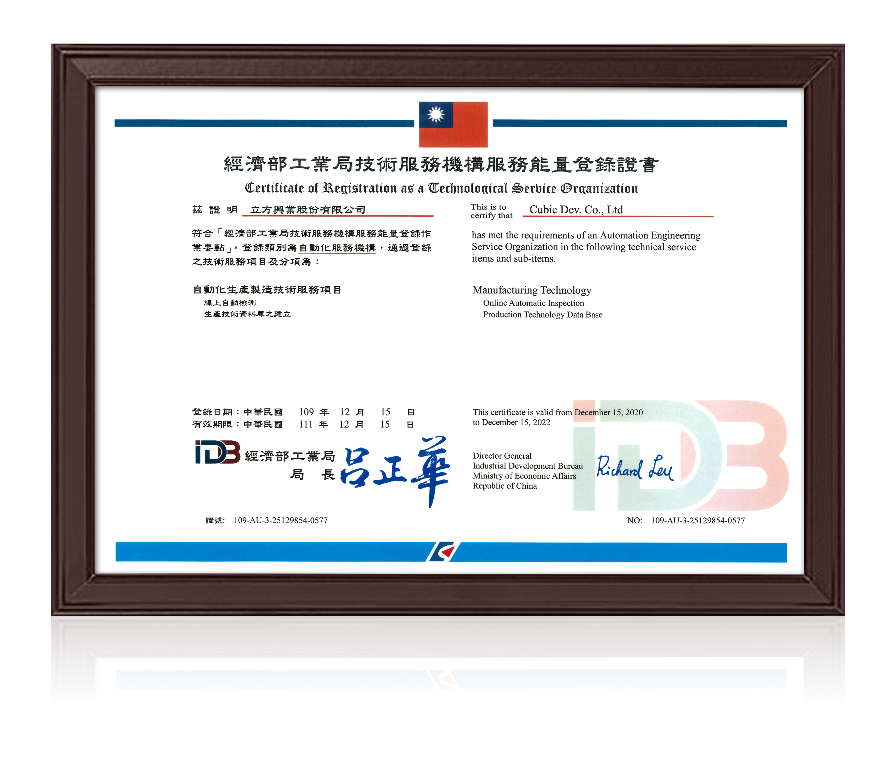 經濟部工業局為推動知識服務業發展,扶持國內技術服務機構,建構公平競爭環境,鼓勵技術服務機構申請技術服務能量之登錄,進而能成為功能性專案輔導計畫之技術服務單位,並藉由工業局專案計畫資源,協助產業進行研發創新、提升效能、升級轉型等產業知識化工作。 立方興業股份有限公司經過專業資格及技術審查,深獲經濟部工業局肯定,取得技術服務機構服務能量登錄證書,成為自動化服務機構,將積極投入自動化生產製造及產業轉型,為產業創造更高效能! 「自動化生產製造」技術服務項目 ◆ 線上自動檢測 ◆ 生產技術資料庫之建立