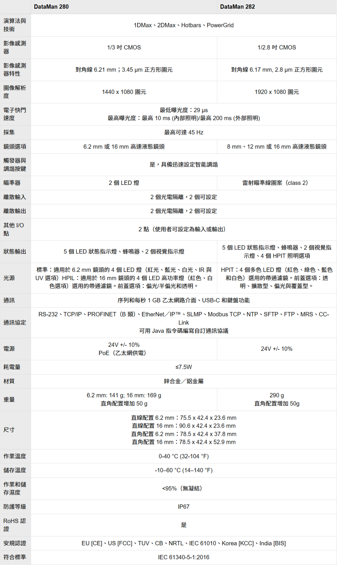 DataMan 280 系列固定式讀碼器規格尺寸小巧,可提供迅速解碼、輕鬆設定,以及重要的工業 4.0 功能,如網頁瀏覽器連線與性能監視。DataMan 280 的設計更能夠在製造與物流供應鏈全程追蹤定位品項,解決各式各樣的難讀一維條碼、二維碼及直接部件標識 (DPM) 碼應用。