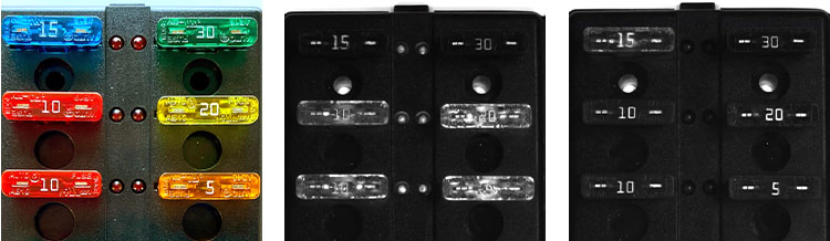 【左:實際組件;中:紅光 (數字不清晰);右:藍光 (數字清晰)】