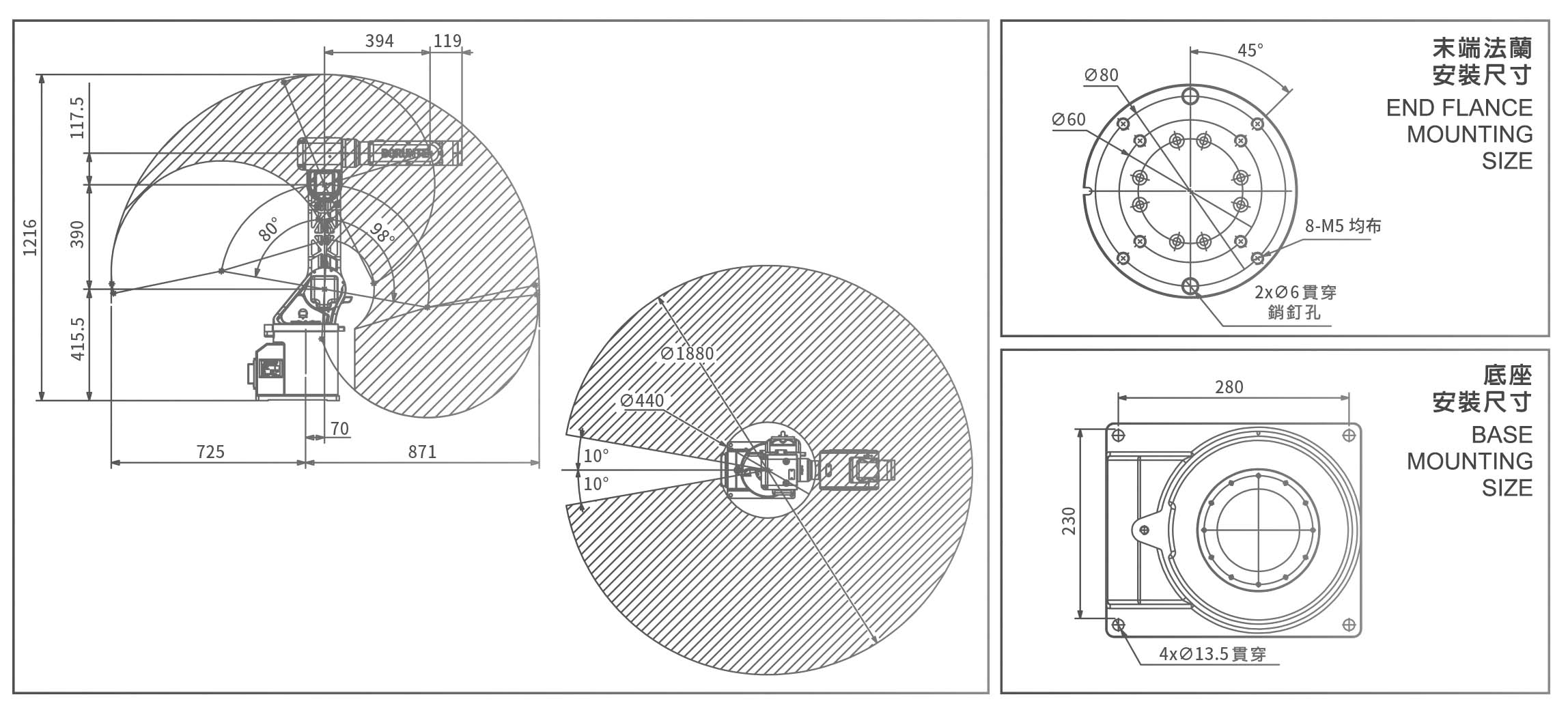CUBIC S94005 CUBIC S94005型機器人是一款六軸機器人, 整個系統操作簡單、結構緊湊、定位精度高、動態性能好,其5kg的負能力尤其用於注塑、取件、 衝壓、搬運、上下料、裝配等領域,適用於注塑 30T-250T。 防護等級高:IP50,防塵。 精度高:重複定位精度±0.05mm。