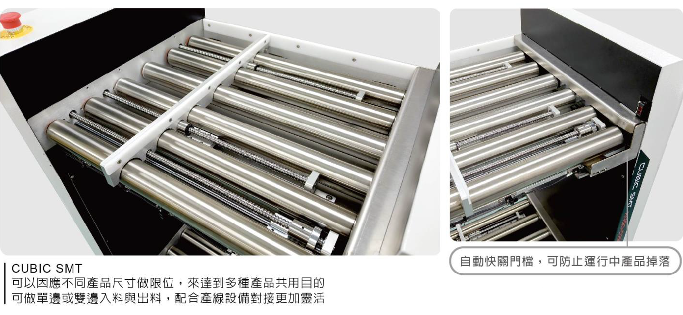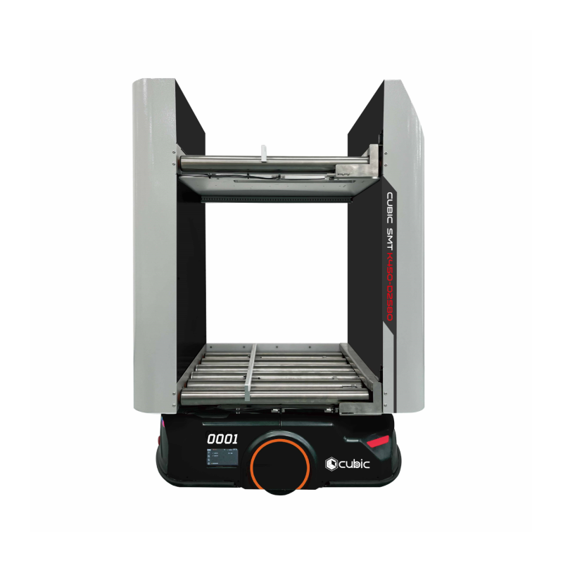 STM產業目前大部分還是採用人力搬運Magazine,Cubic專注在SMT產業為了解決人力問題,與KUKA共同開發SMT專用雙層滾筒AMR,可以同時將上下層Magazine進行交換,來提升產線的運行效率,同時配合調度系統,也可以做單層或層交互搬運設定,以及不同規格的Magazine在廠内共用,讓AMR可以發揮最大的搬運效率。