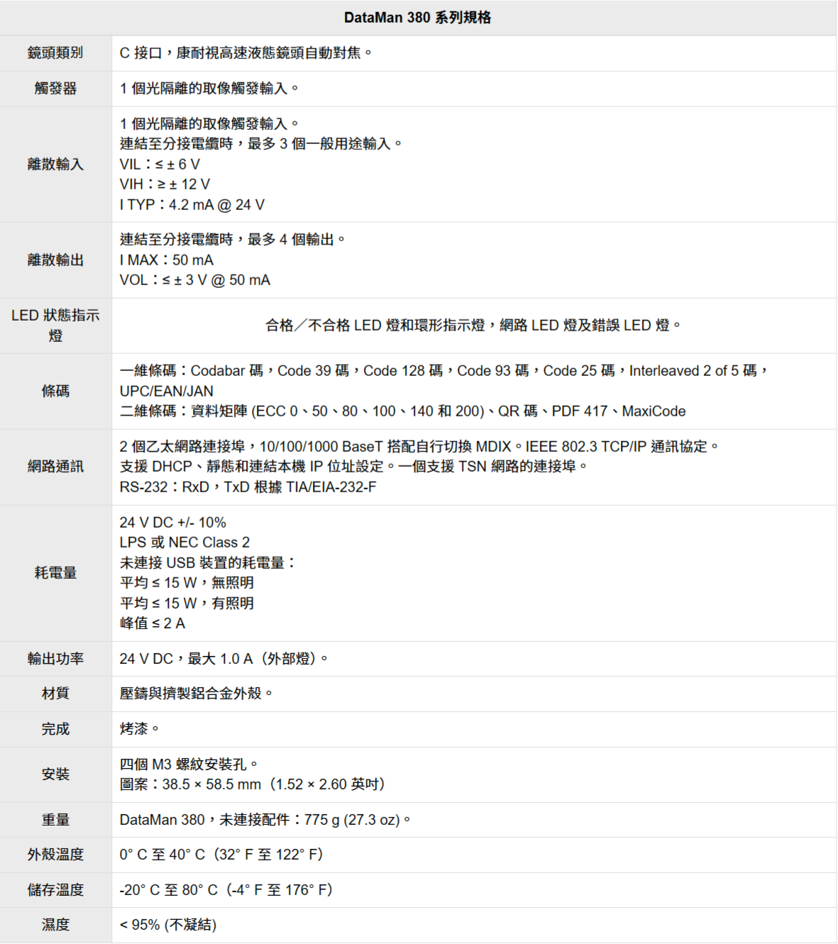 DataMan 380 是一款影像式讀碼器,透過在高速操作中擷取和追蹤產品和包裹資訊,提供有見地、可據以行動的資料。
