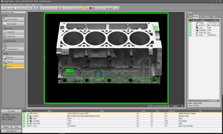 針對過去需要在採用電腦或控制器的系統上進行編程的應用,康耐視COGNEX In-Sight 9000 提供了因應之道。In-Sight EasyBuilder 視窗逐步引導作業人員進行設定流程,而進階的試算表檢視可以直接存取視覺工具。無論圖像解析度需求或應用複雜度為何,單一應用設定環境都可讓客戶在同一個 UI 中進行工作。