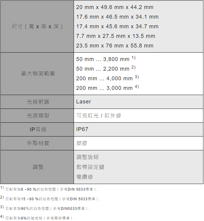 - 在檢測範圍廣與檢測角度大的情況下可靠檢測物件