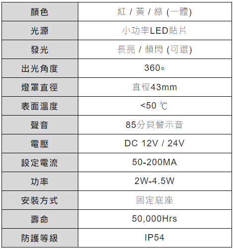 單層可發出三種顏色,蜂鳴器標配,透明罩採用日本三菱PC料,燈珠為臺灣LED晶片封裝,不僅技術先進,而且做工精細,綜合優勢,可替代三層三色警示燈所具備的功能。180度可轉動輪軸,使用更便捷,真正實現多方位機床警示照明。2.5mm厚高強度鋁合金直杆,表面高精度拋光。警示燈採用雙重燈罩設計,光源經過乳白罩後以均勻光照透過透明燈罩,使原本簡單的警示燈增添一份溫情。