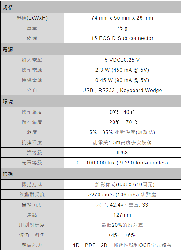 - 對於高反光介面(如移動手機螢幕)上的所有一維、PDF 和二維條碼–也擁有極強的讀取能力,無需再另外購買專業的硬體設備。