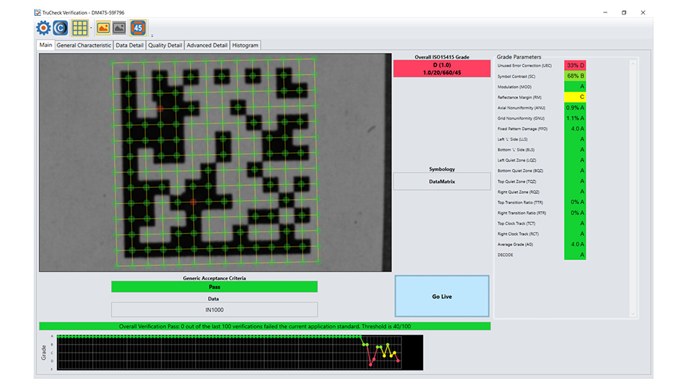 條碼校驗軟體可提供直觀的診斷資訊,有助於發現一次性或趨勢性的條碼品質問題。它根據 ISO 定義的品質參數的測量結果為代碼分配總體等級並生成正式品質報告。這些參數可評估多個影響讀碼器識別和解碼條碼能力的因素,從而最大程度地提高供應鏈中的讀取率。