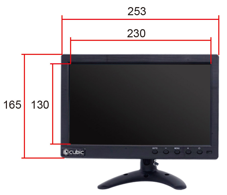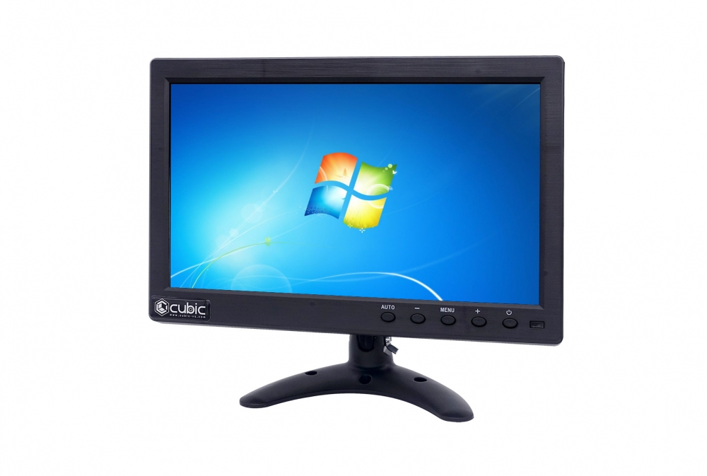 CUBIC 10吋螢幕顯示器規格 CUBIC 10吋螢幕顯示器接口 內置雙喇叭立體音響,信號輸入端子(VGA+HDMI+AV+USB),AV端子黃色孔可連接影像/白紅色孔連接聲音。音頻2可接耳機、外接音箱。可連接電腦主機、收銀機、監控錄影機/攝影機、遊戲機等…。